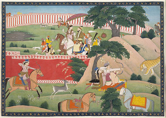 Pleasures of the Hunt, ca. 1800. Ink, opaque watercolor, gold and silver on paper, 9 7/8 x 14 1/8 inches. Courtesy of the Metropolitan Museum of Art.