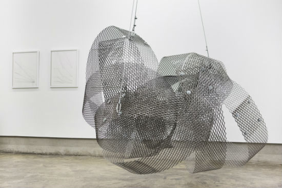 Ryan Roa, Stress Points, Expanded Steel Hanging Knot #01, 2015. Expanded steel, nuts, bolts, and washers, 60 x 72 x 80 inches. Courtesy gallery nine 5. Photo: Laura DeSantis-Olsson