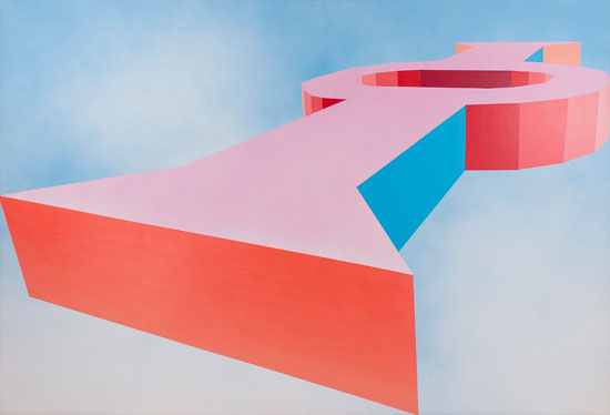 Miriam Schapiro, Keyhole, 1971. Acrylic and spray paint on canvas, 71.5 x 106 inches. The Estate of Miriam Schapiro