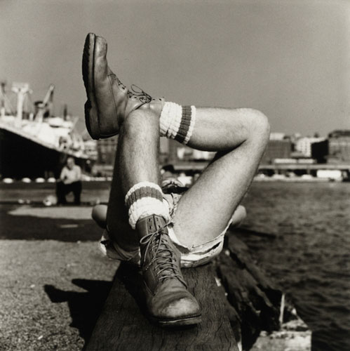 Peter Hujar, Christopher Street Pier #2 (Crossed Legs), 1976. Gelatin silver print, 20 x 16 inches. Courtesy of the Peter Hujar Archive and Paul Kasmin.