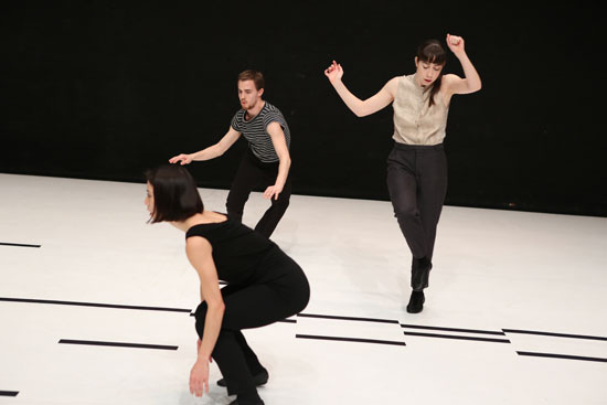 Cynthia Koppe, Marco D’Agostin and Teresa Silva in “For Claude Shannon,” 2016, at The Kitchen. Courtesy of The Kitchen.