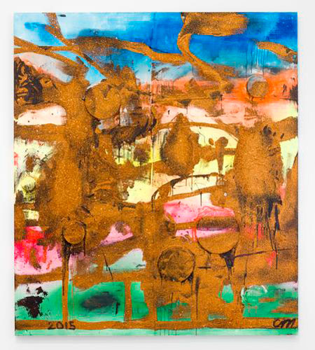 Chris Martin, Untitled, 2015. Acrylic, glitter and foam disks on canvas, 88 x 77 inches. Courtesy of the artist and Skarstedt.