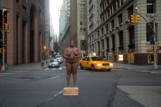 Nona Faustine, From Her Body Sprang Their Greatest Wealth, from the “White Shoes” series, 2013. Archival pigment print, 30 × 40 inches. Courtesy of the artist and the Studio Museum.