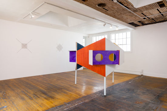 Alice Könitz, Kiosk, 2016. Wood, wood stain, PVC pipe, 76 1/2 x 96 x 96 inches. Courtesy of the artist and Commonwealth & Council.