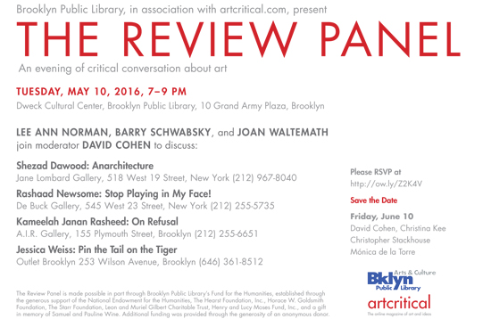 Next Panel: Lee Ann Norman, Barry Schwabsky and Joan Waltemath are David Cohen’s Guests » TRP-May2016-revised