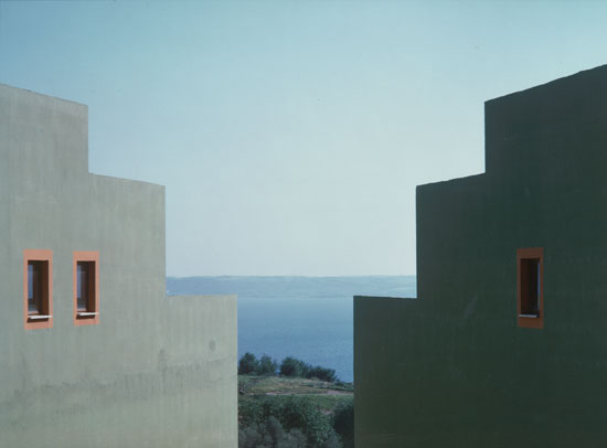 Luigi Ghirri; Trevigliano Mazzano, Portoghesi, case popolari; 1985. Vintage cibachrome, 11 3/4 x 15 1/4 inches. Courtesy of the artist and Matthew Marks.