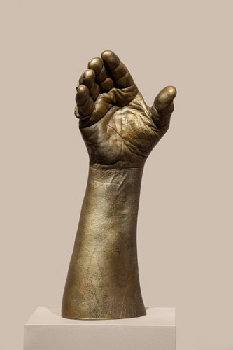 Genesis Breyer P-Orridge, “Touching of Hands,” 2016. Bronze, 11 3/4 x 4 1/2 x 5 inches. Courtesy of the artist and the Rubin Museum.