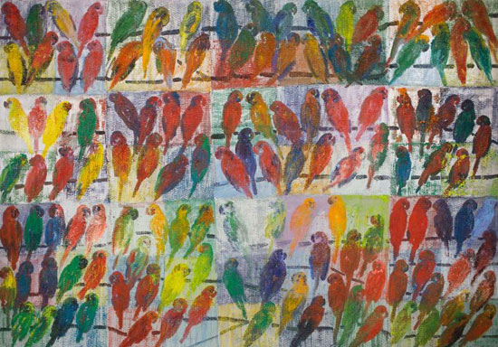 Hunt Slonem, Lories, 2008. Oil on canvas, 93 x 133 inches.
