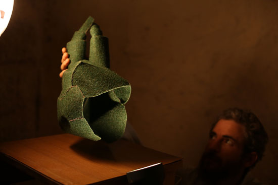 Yeshaiahu Rabinowitz, Green Colored Head, ca. 2014-15. Synthetic felt, 43 x 26 x 19 cm.