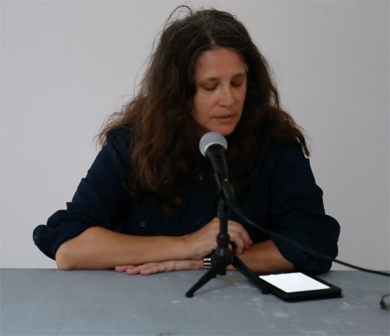 A.L. Steiner reading from Derrick Jensen in her exhibition at Koenig & Clinton