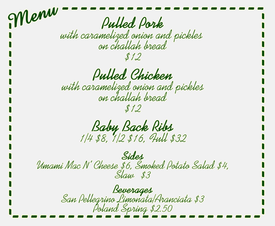 The menu of Fort Gansevoort’s BBQ