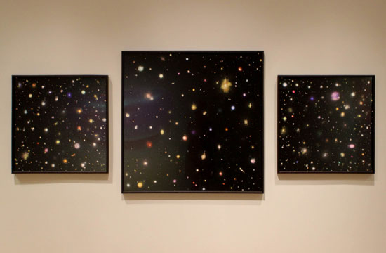 Dario Robleto, Survival Does Not Lie in the Heavens, 2012. Digital inkjet prints on Sintra; 31 x 31, 46 x 46, and 31 x 31 inches, respectively. Grand Rapids Art Museum. Courtesy of ArtPrize.