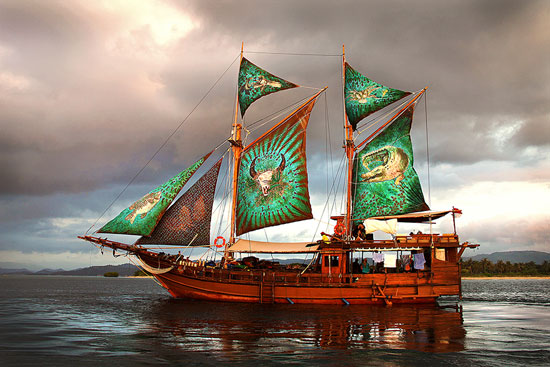 Aubrey Roemer, Maccini Sombala: The Buginese Portrait Project, 2015, paint on canvas sails, varying dimensions. Courtesy of artist.