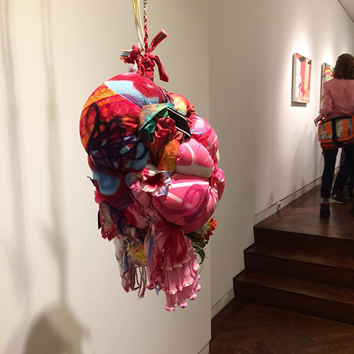 Installation shot of the exhibition, Representing Rainbows, curated by Lisa Corinne Davis at Gerald Peters Gallery, New York, September 2016, showing a work by Shinique Smith. Photo: Michael Scoggins