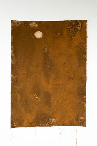 Shinji Turner-Yamamoto, Sidereal Silence: Chalybeate #18, 2016. Ferruginous mineral spring water deposit on raw cotton canvas, resin