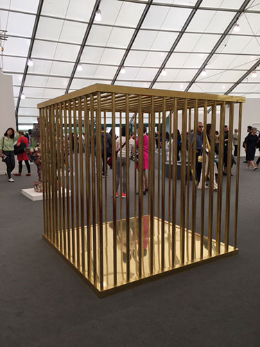 Sylvie Fleury, Gold Cage PKW, 2003. Brass, 70-3/4 inches square. Courtesy of Salon 94