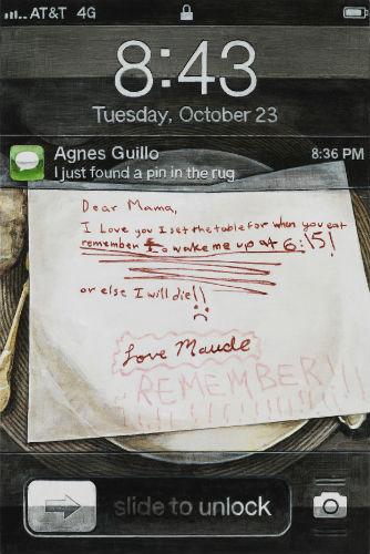 Laura Karetzky, I just found a pin, 2014-16. Oil on wood, 24 x 16 inches. Courtesy of Lora Schlesinger and the Artist