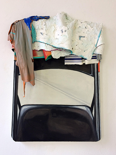 Leslie Wayne, (W)restling Robert, 2017. Oil on panel, 28 x 21 x 4 inches. Courtesy of the artist and Jack Shainman Gallery