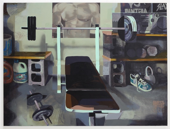 A cigarette is smoked, a phone is answered: Matt Bollinger at Zürcher » mb_james__weight_room_2017_flashe-and-acrylic-on-canvas_48x60in