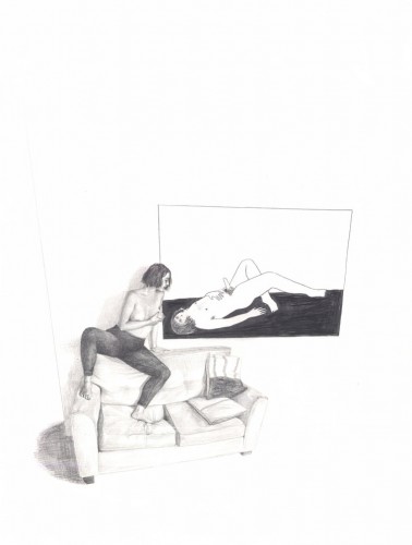 Frances Waite, “Probably Born to Take Care of You With a Painting I Never Made Called ‘Something About Men Always Making me Into a Mommy By Any Means Necessary'”, 2017, graphite on paper, 18 x 24 inches. Image courtesy of the gallery.
