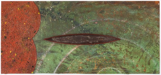 Pat Adams, Long Soon, 1996. Mixed media on paper, 5.25 x 11.5 5 inches. Courtesy of the artist and Victoria Munroe Fine Art