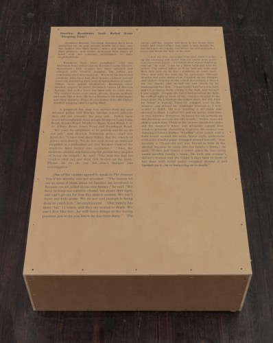 Jim Lee, Untitled, 2018 (bench with printed text). Courtesy of the artist and Nicelle Beauchene Gallery, New York