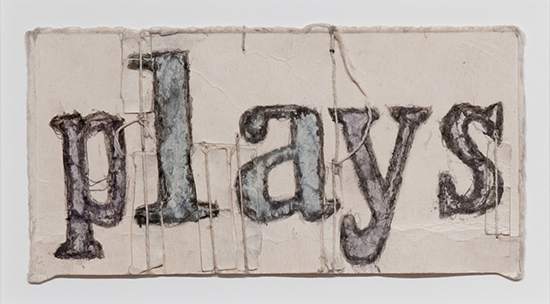 Untitled (Plays), n.d. Soot, spit, colored pulp, collage, string, found paper, 3.5 x 6.75 inches. Courtesy of Jessica Freedman © James Castle Collection and Archive LP