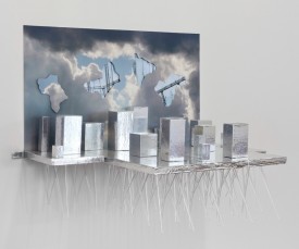 Diana Cooper, Silver City, 2010-13. Aluminum tape, plastic, wood, prints,