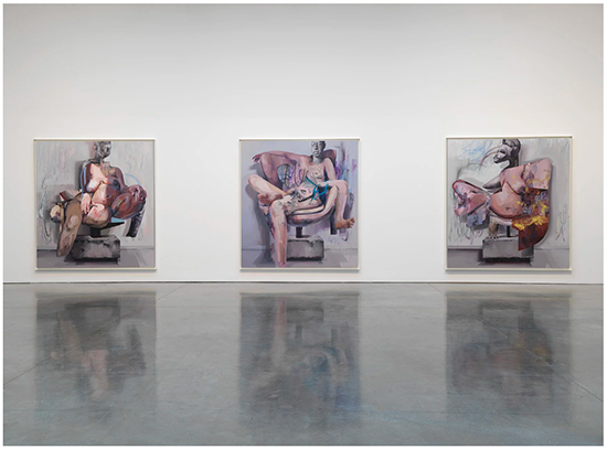 Installation view: Jenny Saville: Ancestors, Gagosian Gallery, New York 2018, showing Fate 1-3. Photography by Rob McKeever. Courtesy Gagosian.