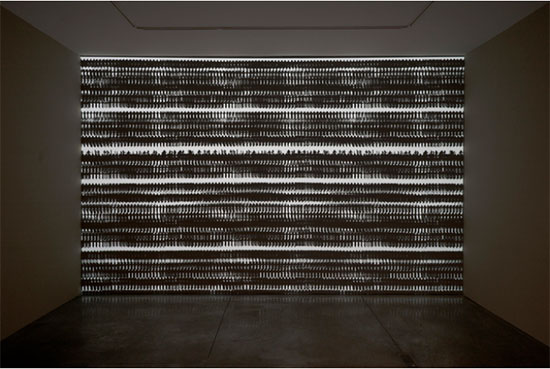 Michal Rovner, Mechanism, 2018, installation shot. Photo: Tom Barratt © 2018 Michal Rovner/Artists Rights Society (ARS), New York