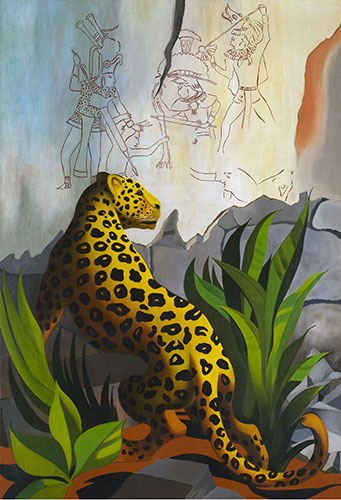 Raul Guerrero, Vista de Bonampak, 1984. Oil on canvas 54.5 x 37.25 inches. Courtesy of the artist and Ortuzar Projects.
