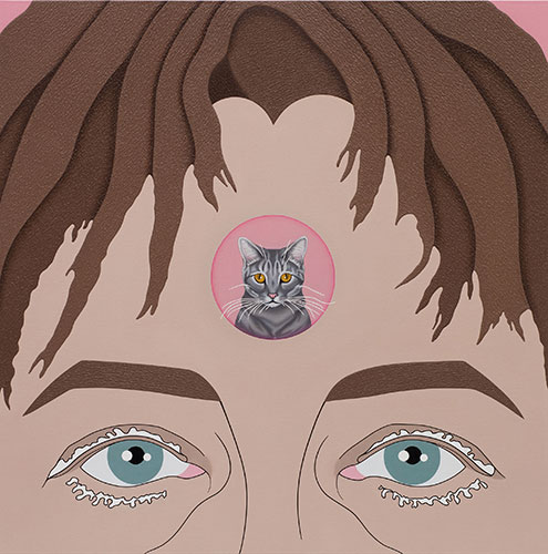 Linda Stark, Self-Portrait with Ray, 2017. Oil on canvas over panel, 36 x 36 inches. Courtesy the artist.