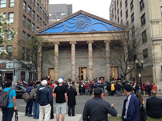 Donald Lipski, The Ship of Pearl, 2013. The Cathedral Church of St. Paul, Boston. Aluminum, 18 x 75 x 1.5 feet. Photo, Donald Lipski