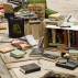 Charles LeDray, Free Public Library, 2015-2019. Paper, cardboard, fabric, thread, acrylic paint, ink, acrylic varnish, acrylic gel medium, brass, patina, bubble gum, glass, metal, wire, wood, cement board, cement, granite, glue, fiberfill, Mylar, 10-1/8 x 97-1/8 x 50-1/4 inches. Courtesy of the artist and Peter Freeman, Inc.