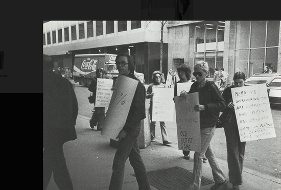Nancy Spero protesting outside of MoMA, 1976. Courtesy Museum of Modern Art, New York, archives