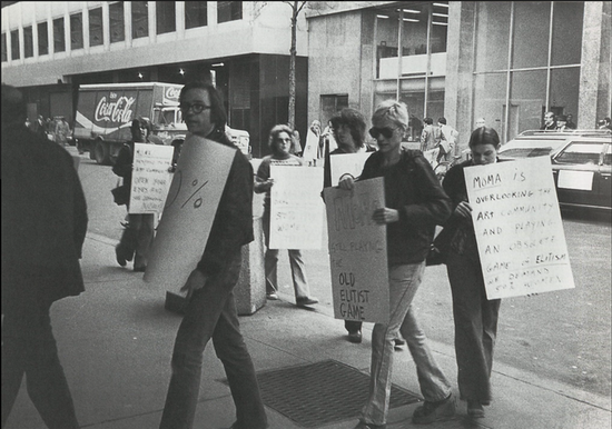 Nancy Spero protesting outside of MoMA, 1976. Courtesy Museum of Modern Art, New York,