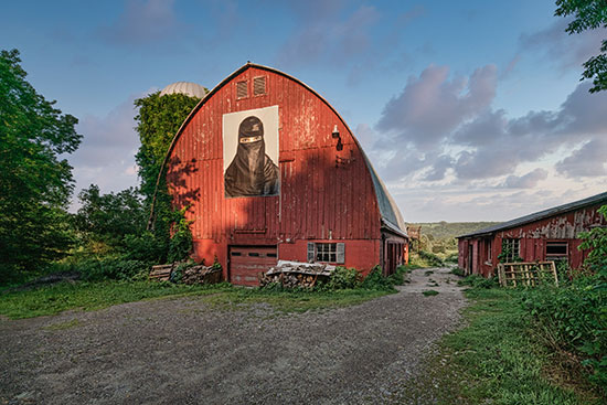 Exterior shot of the Re Institute, Millerton, NY, 2021 for the exhibition, , Brenda Zlamany: The Itinerant Portraitist. Photo by Ian Christmann