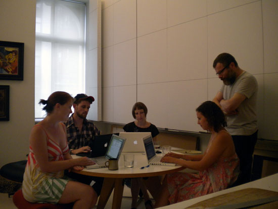 Editor/Publisher David Cohen (standing) with associates and interns Candace Mills (from left), Aaron Dunn, Karley Klopfenstein and Rachel Stratton, Summer 2010