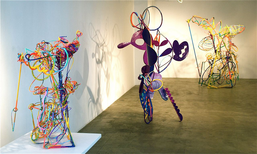 The Mixologist: Peter Reginato at Heidi Cho » Installation shot of Polychrome: Peter Reginato at Heidi Cho Gallery, March 19 to April 16, 2011 showing (center) Dear Purple, 2011, stainless steel and enamel, 88 x 80 x 46 inches.